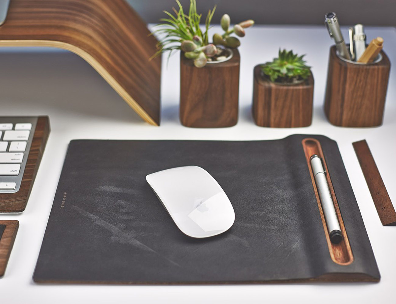 Grovemade Vegetable-Tanned Leather & Wood Mouse Pad